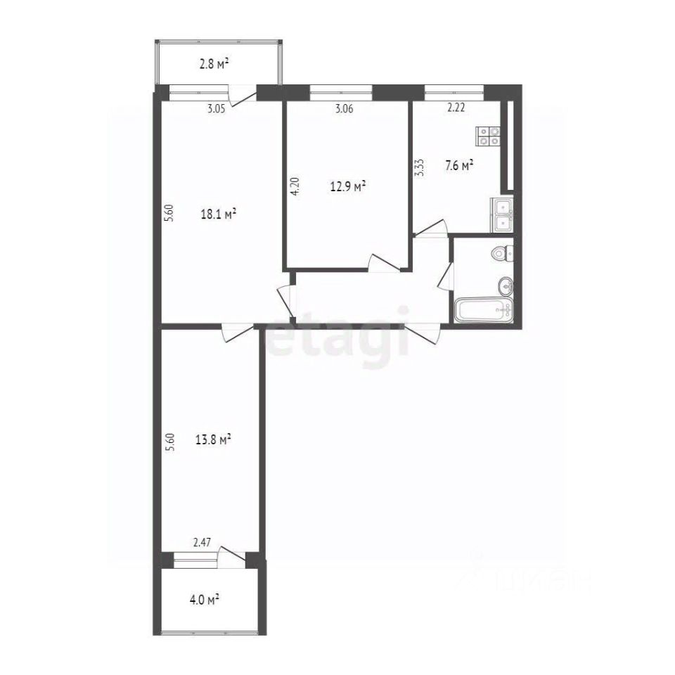 60,4 м²
