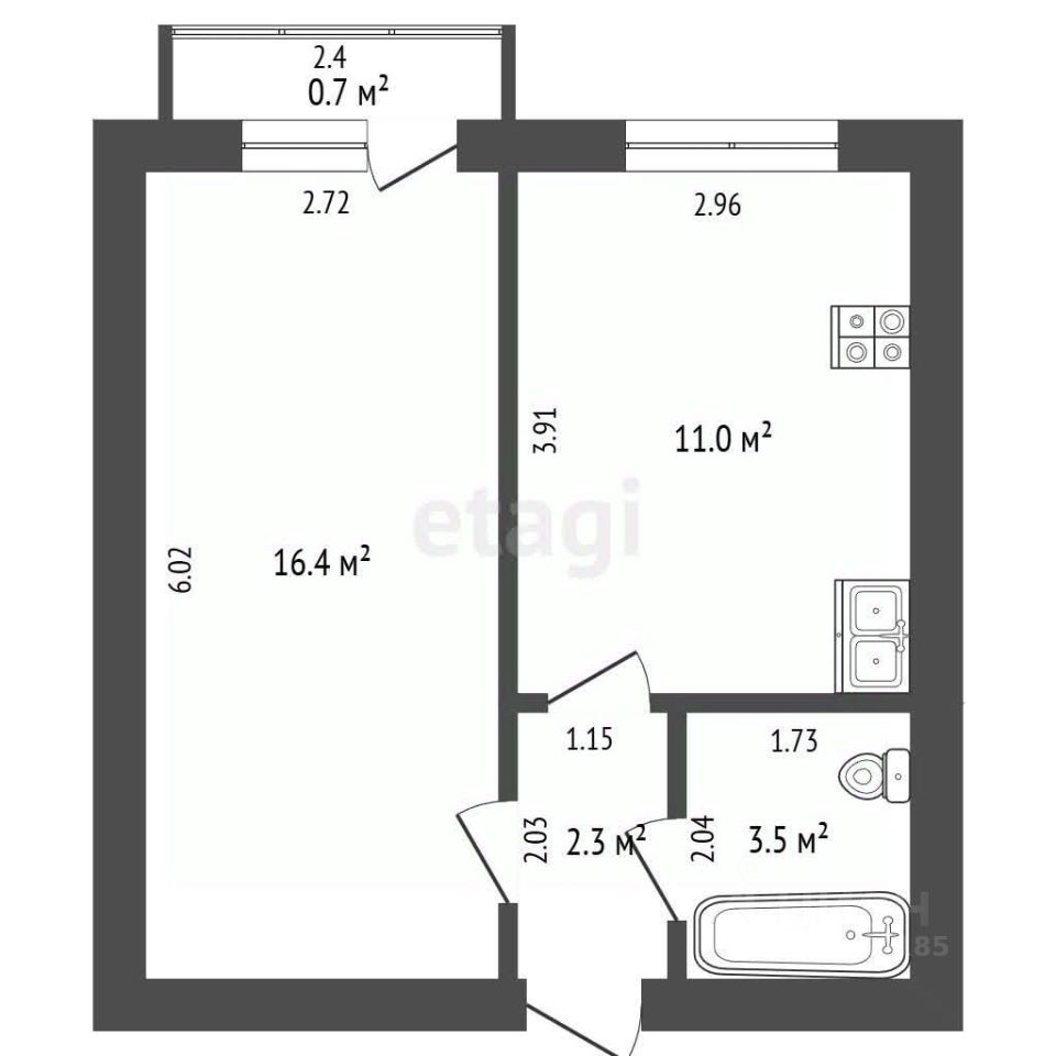 Просторная кухня полностью укомплектована встроенной техникой: холодильник, варочная панель, духовой шкаф и микроволновая печь. Также в наличии стиральная машина. В комнате установлен вместительный шкаф, кондиционер и готовая спальная зона.