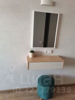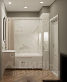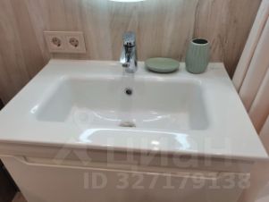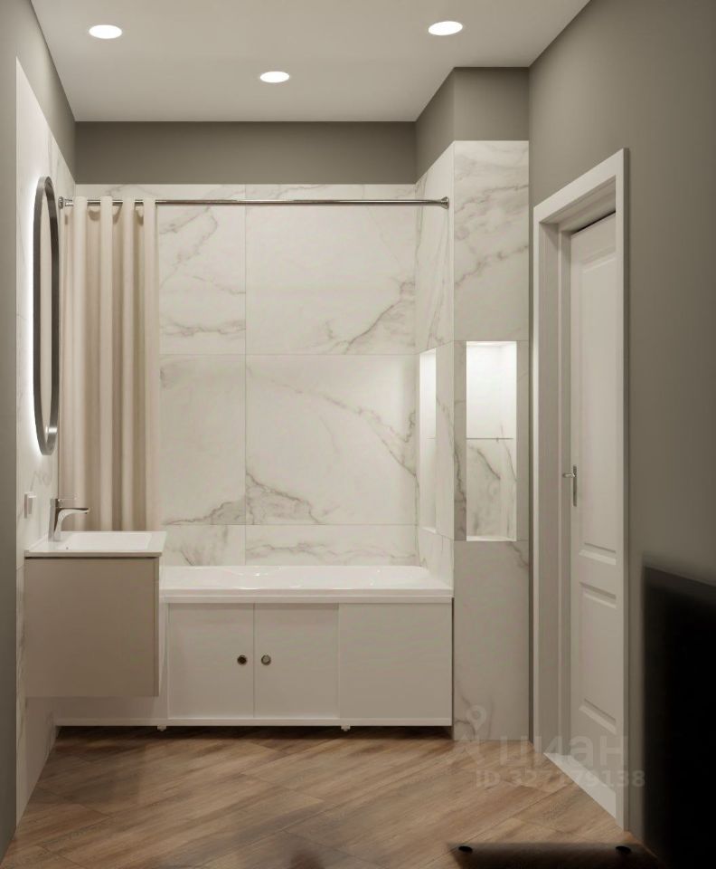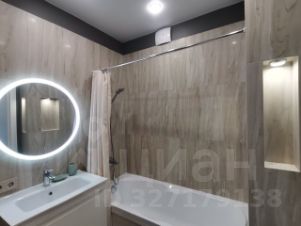 В санузле, красивая подсветка, ниши для косметики и под декор.