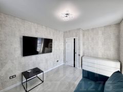 В квартире сделан ремонт по Дизайн Проекту. Произведена стяжка пола, стены выведены под уровень, электрика новая, кабель ГОСТ, натяжные потолки с современными люстрами и несколькими сценариями освещения, в сан узлах качественная плитка, полностью новая сантехника