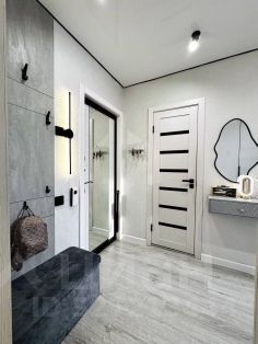 В прихожей места для хранения одежды, новая входная дверь с большим зеркалом.