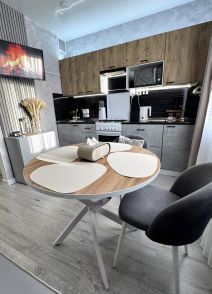 Просторная кухня оборудована современной встроенной техникой, в том числе встроенная вытяжка mounfeld с угольным фильтром. Так же установлен кондиционер, фильтр для воды с трехступенчатой очисткой. Теплые полы в кухне, коридоре и комнате. (Запрограммирован на температуру в помещении, а не на температуру полов, работает с умным домом).