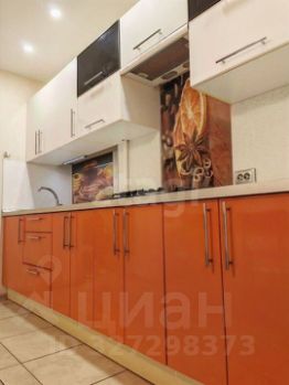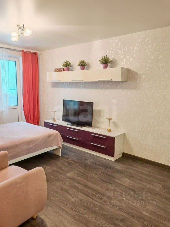 Кухня оснащена функциональным гарнитуром с увеличенным количеством шкафов, современной варочной панелью и выдвижной фурнитурой. В комнате установлен вместительный шкаф-купе со встроенной зоной под телевизор, вся мебель изготовлена на заказ, имеется кондиционер.