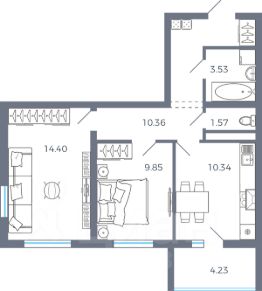 Общая площадь52,17 м²