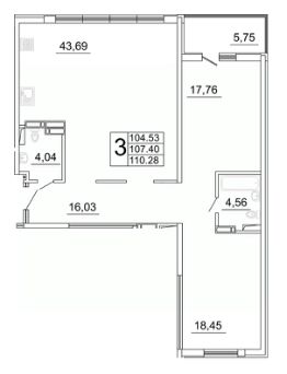 Продаётся 3 комнатная квартира 415 в строящемся жилом комплексе "Дом у Космопорта 2";.