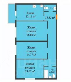 Продaетcя 3-кoмн. квaртира — 82,1кв.м, 16/17 эт., в ЖK "Дом у Озера".