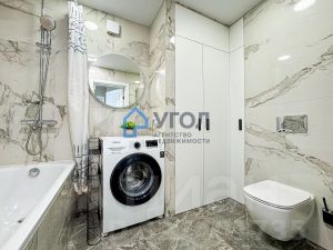 Полноценный санузел: ванна, большое место хранения, установлен водонагреватель.