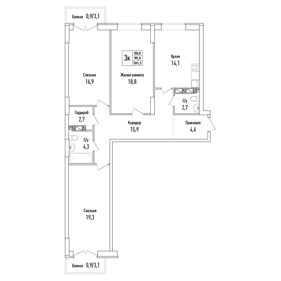 Трехкомнатная квартира 8 на 2 этаже с улучшенной планировкой. Три просторные, изолированные комнаты позволят реализовать любой жизненный сценарий. Здесь будет комфортно большой семье с детьми, и тем, кто любит часто принимать гостей. Квартира на две стороны. Есть дополнительное пространство для хранения вещей (гардеробная). В коридоре достаточно места, чтобы установить шкаф-купе. В квартире предусмотрены 2 санузла: совмещенный, где поместится вся необходимая сантехника, площадью 4,3 кв.м и гостевой, площадью 2,7 кв.м. Общая площадь 101,1 кв.м.