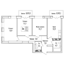 Трехкомнатная квартира 9 на 3 этаже с улучшенной планировкой. Три небольшие, светлые, изолированные комнаты позволят реализовать любой жизненный сценарий. Здесь будет комфортно большой семье с детьми, и тем, кто любит часто принимать гостей. Квартира угловая на две стороны. В коридоре имеется удобная ниша, где можно установить шкаф-купе или сделать небольшую гардеробную. В квартире предусмотрены 2 санузла: совмещенный, где поместится вся необходимая сантехника, площадью 4,3 кв.м и гостевой, площадью 2,4 кв.м. Общая площадь 71,5 кв.м.