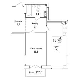 Просторная однокомнатная квартира 52 на 4 этаже с улучшенной планировкой. Пространство квартиры распределено таким образом, чтобы вам хватило места для хранения всех необходимых вещей. Большая комната имеет правильную форму, в ней можно организовать место для отдыха и хранения вещей. В коридоре имеется ниша, где можно установить вместительный шкаф-купе. Из комнаты есть выход на балкон, который можно использовать как дополнительное пространство для хранения или релакса. В санузле достаточно места для установки всей необходимой сантехники и организации хранения вещей. Общая площадь 55,4 кв.м.