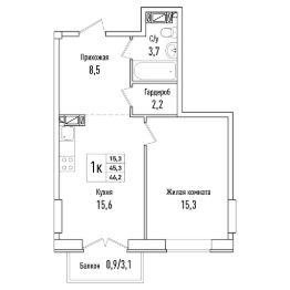 Просторная однокомнатная квартира 53 на 4 этаже с улучшенной планировкой. Пространство квартиры распределено таким образом, чтобы вам хватило места для хранения всех необходимых вещей. Прихожая, кухонная зона не имеют дополнительных перегородок, что позволяет визуально увеличить пространство и применить интересные дизайнерские решения. Большая комната имеет правильную форму, в ней можно организовать место для отдыха и хранения вещей. В коридоре имеется ниша, где можно установить вместительный шкаф-купе. Есть дополнительное пространство для хранения вещей (гардеробная). Просторная кухня имеет выход на балкон, который можно использовать как дополнительное пространство для хранения. В санузле достаточно места для установки всей необходимой сантехники. Общая площадь 46,2 кв.м.