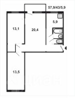 57,9 м²