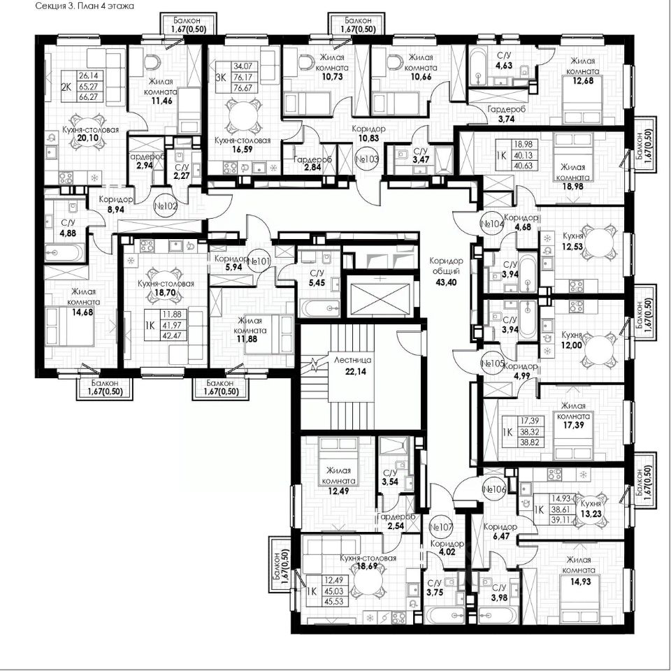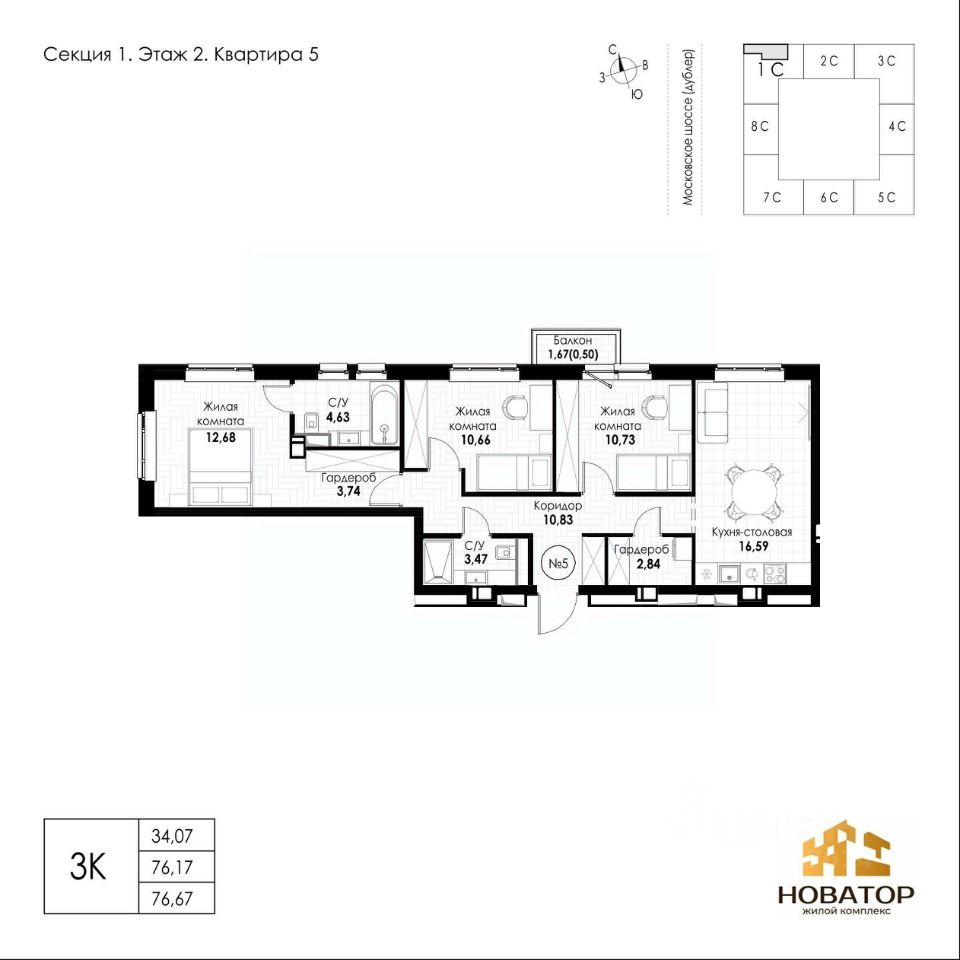 Общая площадь76,67 м²