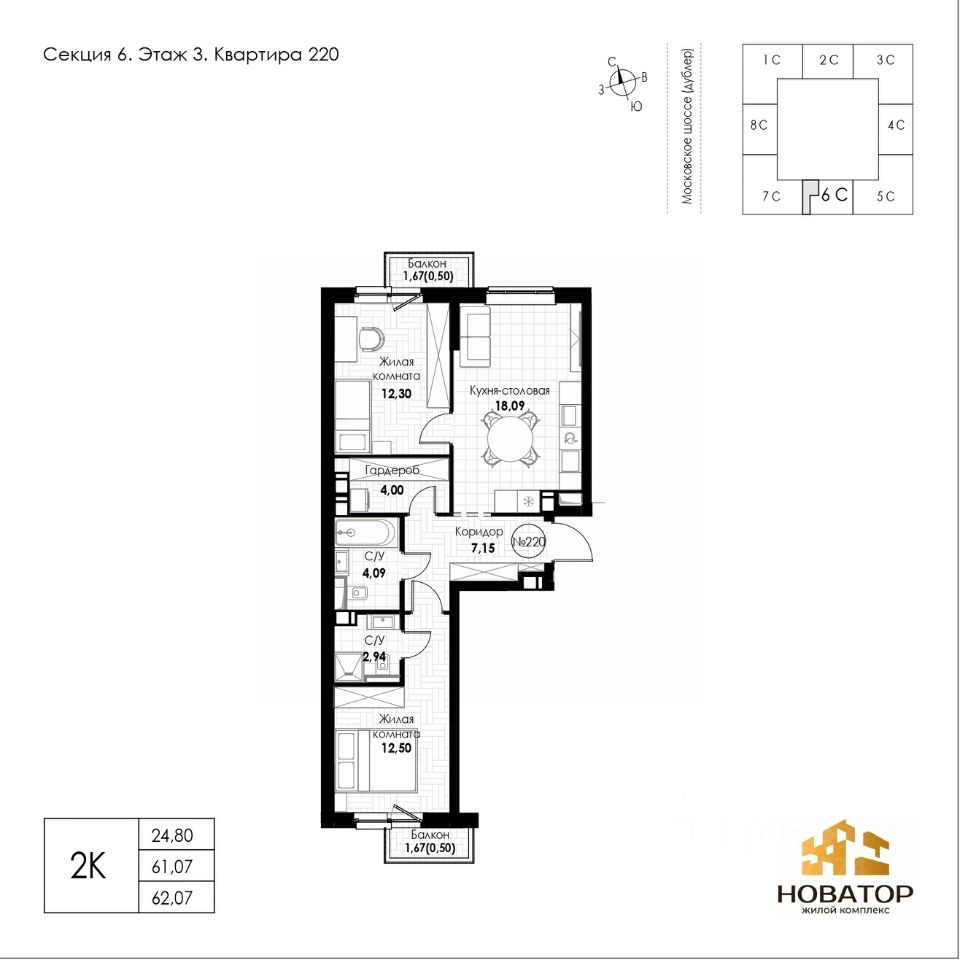 Общая площадь62,07 м²