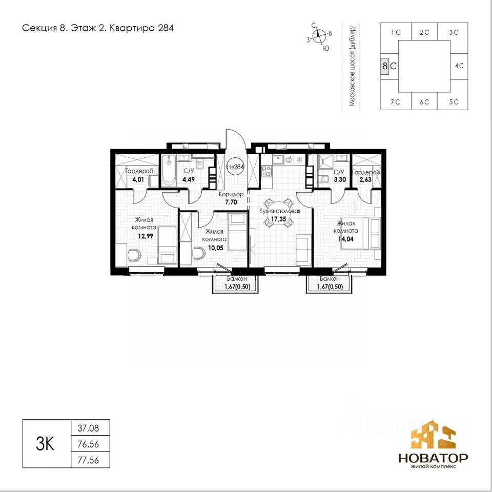 Общая площадь77,56 м²
