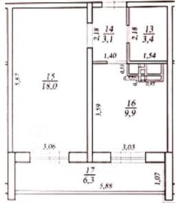 В квартире светлая просторная комната 18 м². В подарок оставляем вместительный встроенный шкаф во всю стену (отличная альтернатива гардеробной).