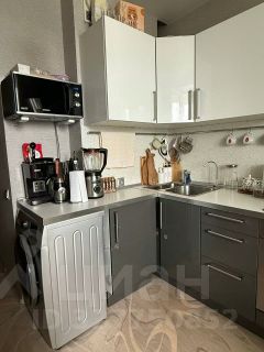 Кухня 9,9 м² остается со всем кухонным гарнитуром и качественной техникой (духовка Bosch и электрическая варочная панель Electrolux).