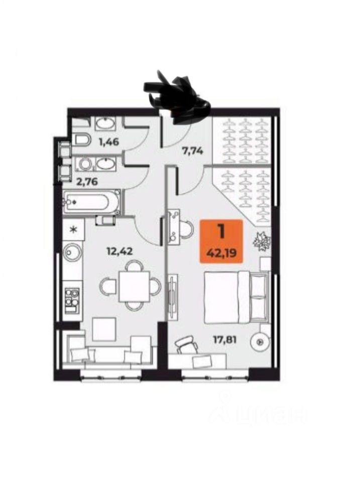 Продается 1- комнатная квартира площадью 42 кв.м, расположенная по адресу: проспект Карла Маркса, 231