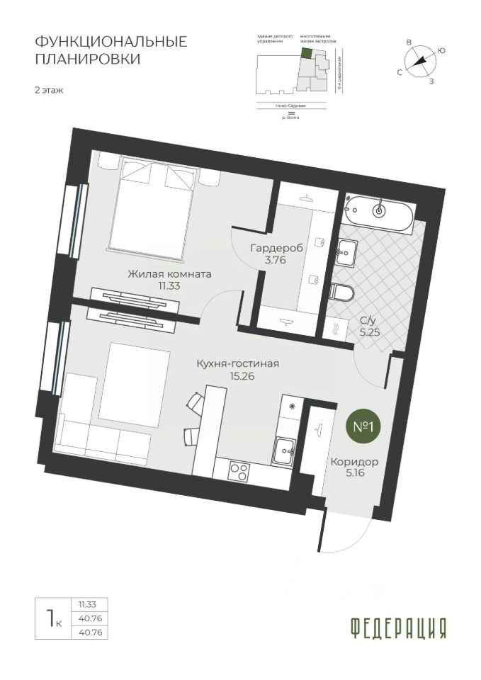 Общая площадь40,76 м²