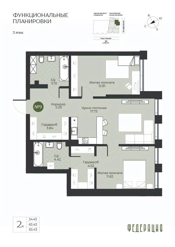 Общая площадь65,43 м²
