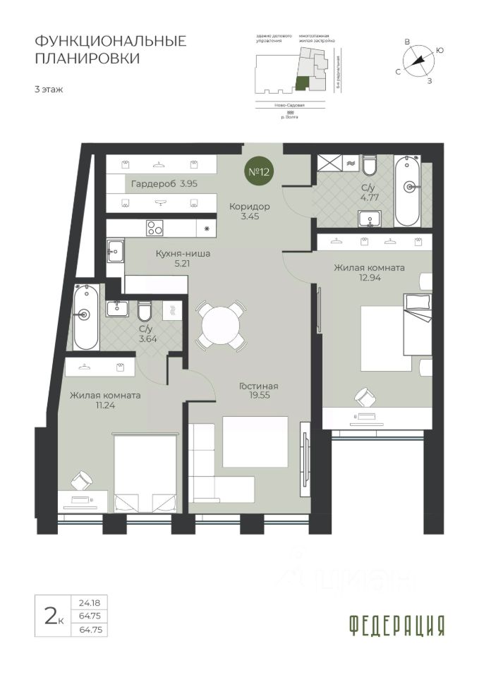 Общая площадь64,75 м²