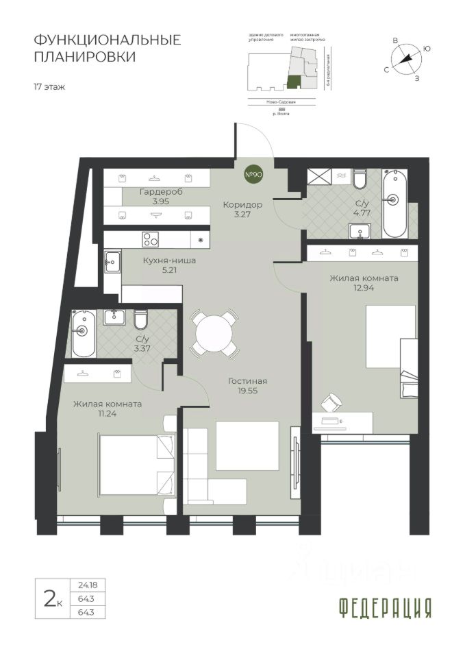 Общая площадь64,3 м²