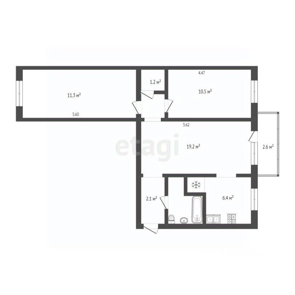 56,5 м²