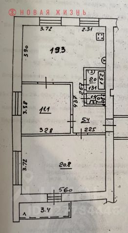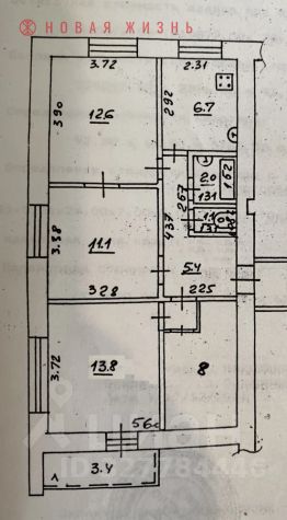 Три раздельных жилых комнаты. Большой зал 20,8м2, две другие 11,1м2 и 12,6м2.
