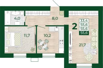 Продаётся 2-комнатная квартира в строящемся доме (Дом 13), срок сдачи: III-кв. 2027, общей площадью 55.6 кв.м., на 1 этаже.