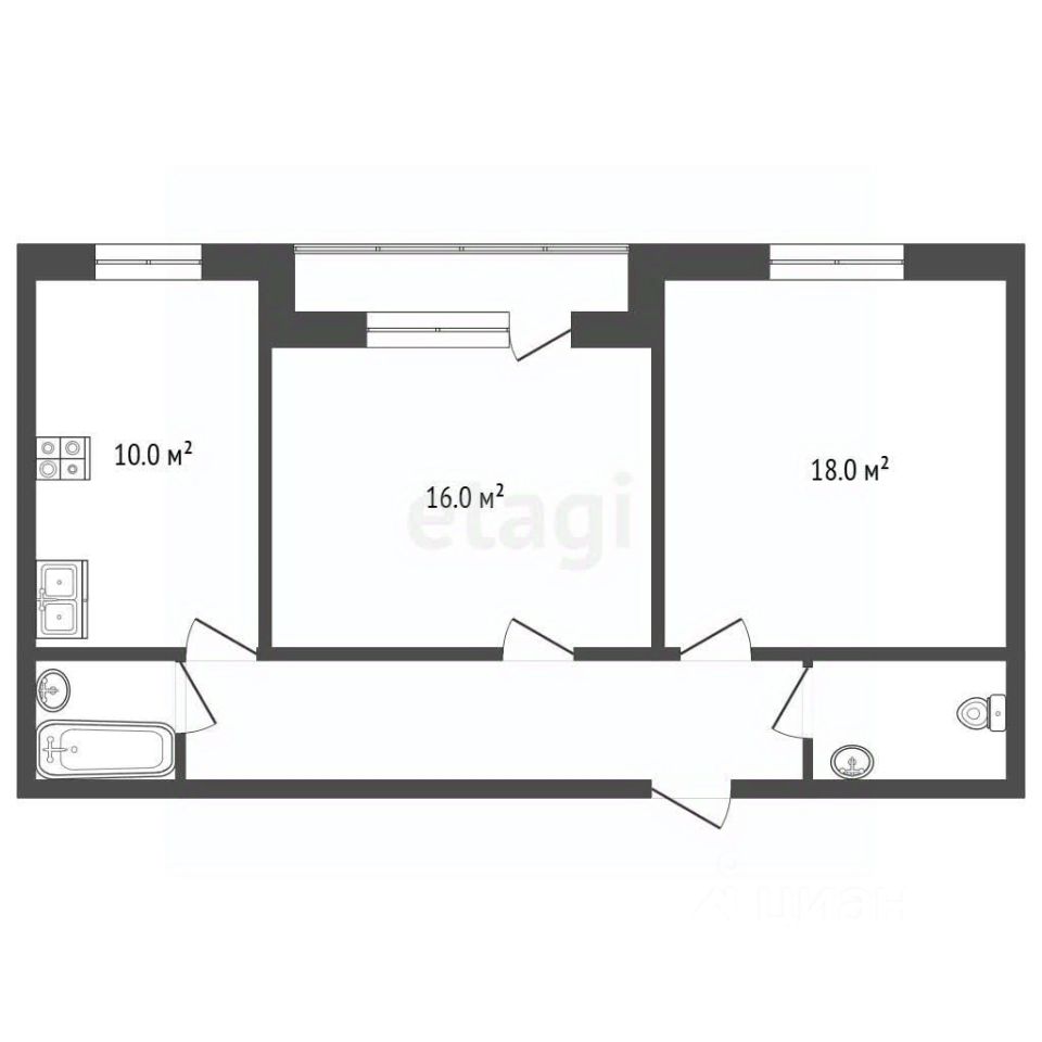 По планировке 2 раздельные комнаты правильной квадратной формы, кухня 10 кв.м., большой холл и 2 санузла. Огромная по площади лоджия, застеклена пластиковыми стеклопакетами. Квартира в черновой отделке с элементами предчистовой подготовки к ремонту.
