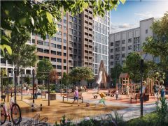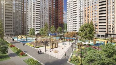 Несмотря на то, что по планировке квартира расположена на одну сторону, она очень светлая., с окнами во двор, где находится большая современная детская площадка.
