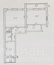 Общая площадь с учетом лоджий 94 м2/84 м2 без учета, просторная кухня-гостиная 23,6 м2, спальня 27,4 м2 с двумя окнами, спальня 11,4 м2 с выходом на лоджию, санузел раздельный.