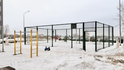 Большая открытая парковка, вход в подъезд с 2-х сторон: с улицы и со двора. Во дворе детская и спортивные площадки, много лавочек для отдыха.