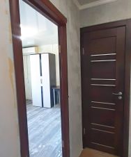 Площадь 28,3 м2 без учёта утепленной лоджии и балкона. Состояние в квартире - ремонт: выровняли и отштукатурили стены, застеклили балкон и лоджию, натяжные потолки по всей квартире, трубы новые (горячая/холодная вода, канализация по всему стояку дома), счетчик на свет день/ночь, счетчики на воду. Окна - ПВХ, полы линолеум. Санузел совмещенный, бойлер. В квартире -гардеробная по плану+ кладовая на этаже. Продажа с мебелью.