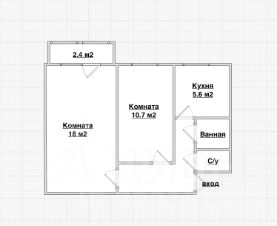 Комнаты: (18 м² и 10,7 м²) — изолированные пространства для отдыха и работы.