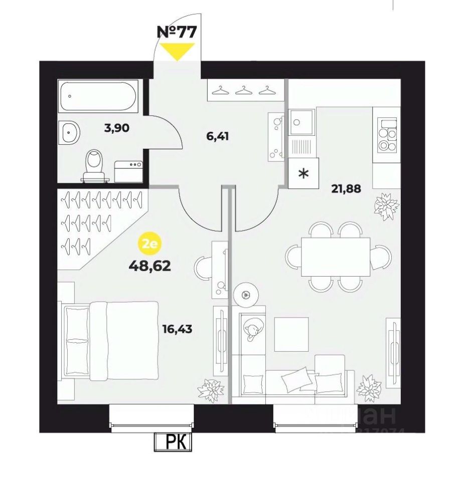 Продаётся 1-комн.квартира площадью 48,62 кв.м на 15 этаже, расположенная в ЖК "Атмосфера" по адресу г. Самара, ул. Гастелло, 4.