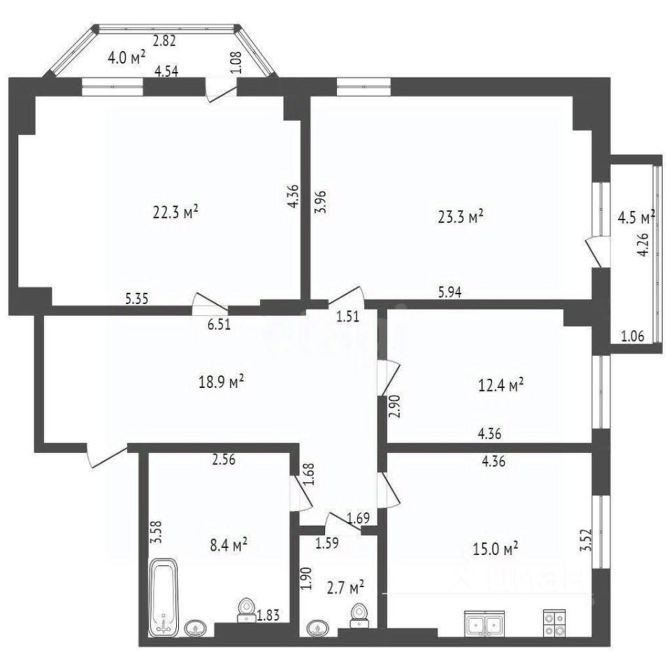15 м²