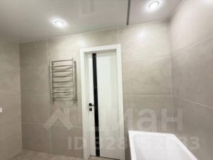Совмещенный санузел - 4.2м2, установлен теплый пол, ванна акрил 1.75м, тропический душ, электрический полотенце сушитель с сенсорным управлением, зеркало с подсветкой, подвесная тумба, керамогранит от бутика "Kerranova"