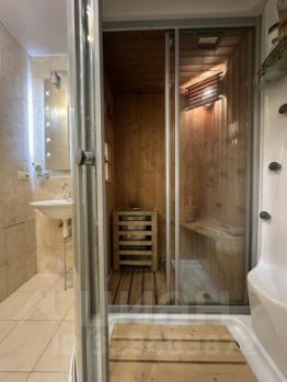 кухня - (20,5) кв. м., с выходом на застекленный балкон (пл. - 4, 2 кв. м.); два санузла: один гостевой, второй - (5, 5) кв. м.: ванна, душевая кабина плюс сауна (испанская конструкция), двойной коридор (12, 9 +4,9) кв. м..