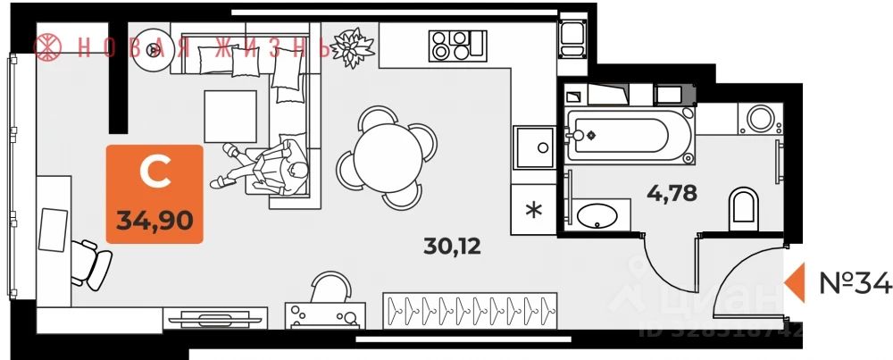 Продаётся студия площадью 34,9 кв.м на 5 этаже, расположенная в ЖК "Капитал" (3-й дом), по адресу г. Самара, ул. Санфировой, 95В. На 1 этаже ЖК расположена лобби-зона для отдыха жителей и гостей, коворкинг-центр с рабочей зоной и улучшенный Wi-Fi. Есть паркинг. Закрытый двор-парк без машин. Квартиры сдаются в предчистовой отделке white box. Широкоформатное остекление и функциональные планировки с большими кухнями и гардеробными.