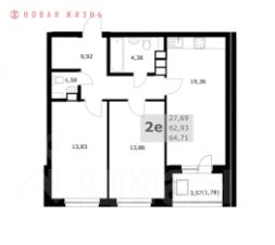 Общая площадь64,7 м²