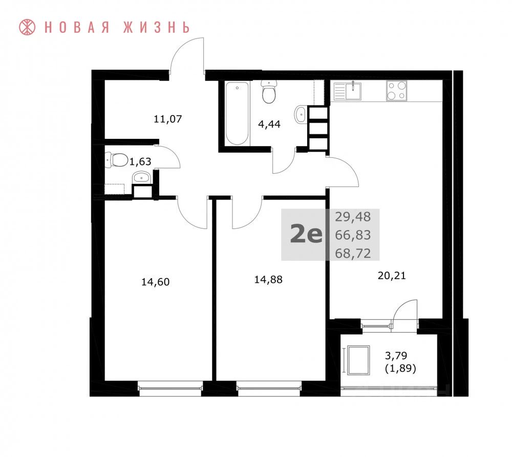 Общая площадь68,7 м²