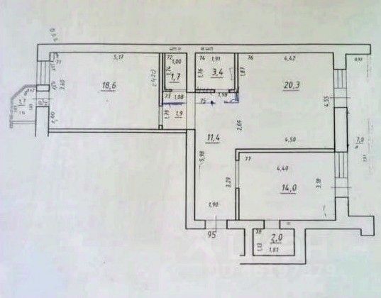 Общая площадь 73,3 м2 + 2 лоджии 1.7 м2 и 7.9 м2
