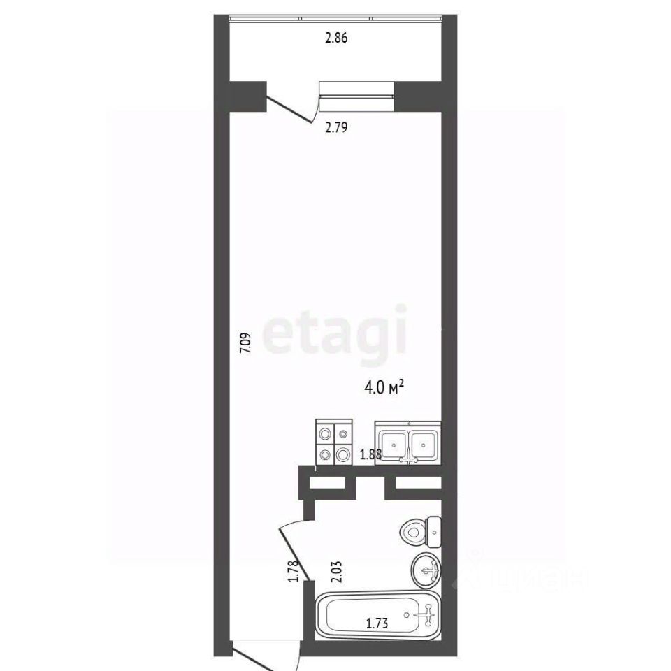 Балкон: 2,9 м².