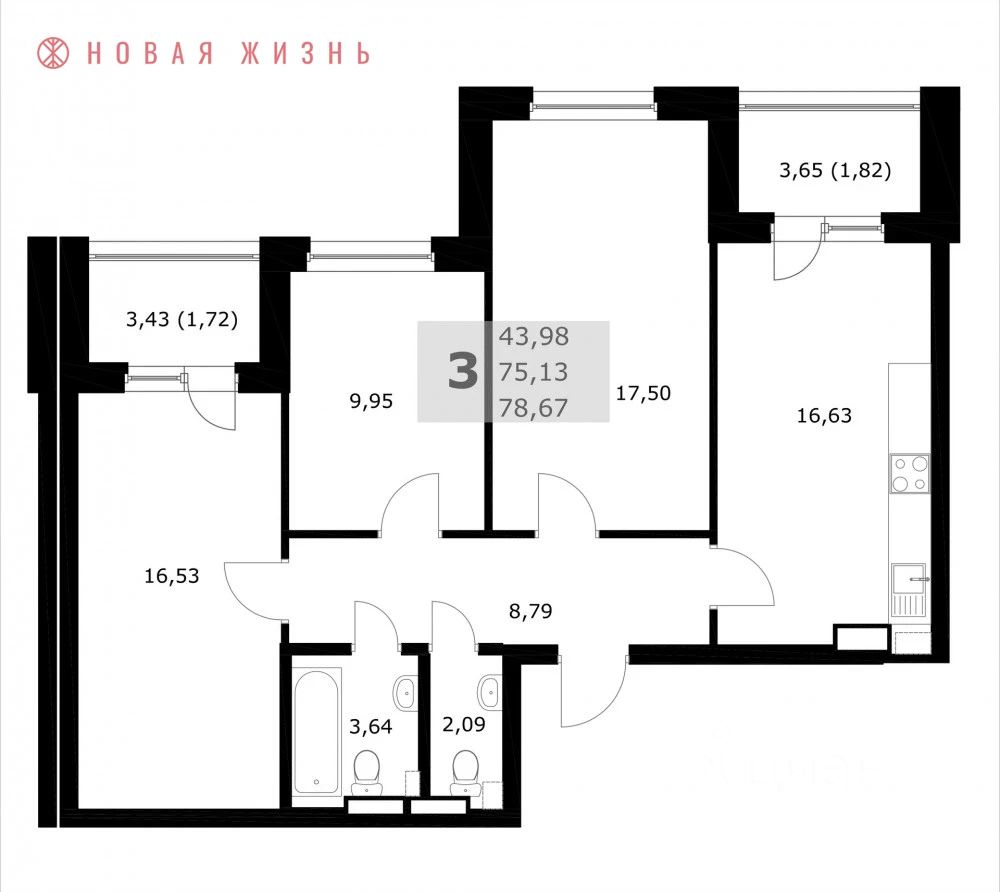 Продается 3-комн. квартира, 78,7 м²