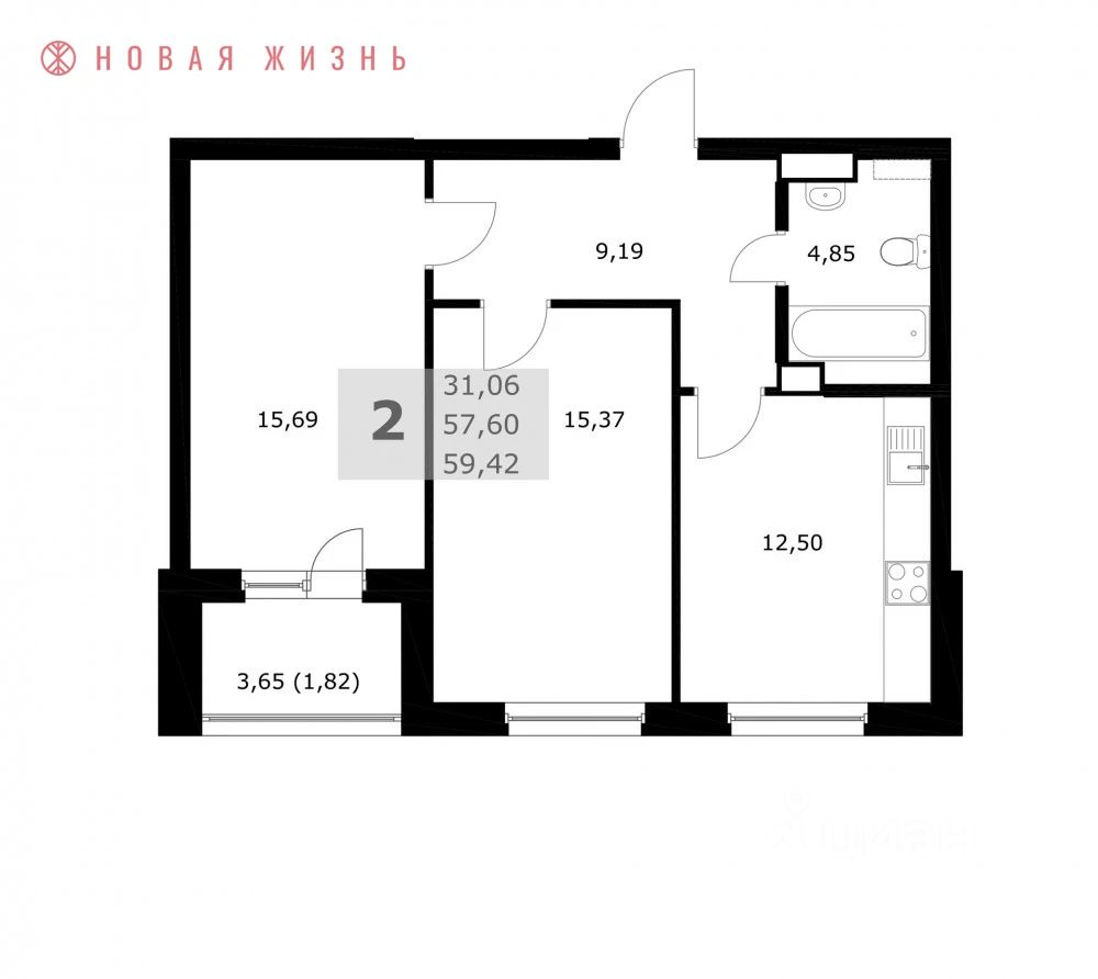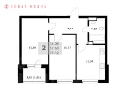 59,4 м²