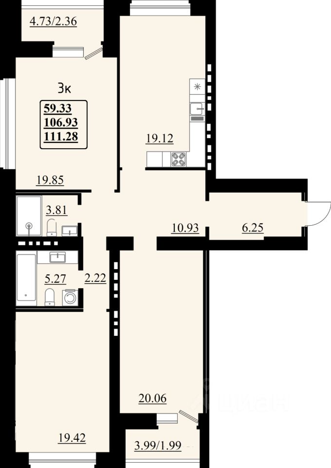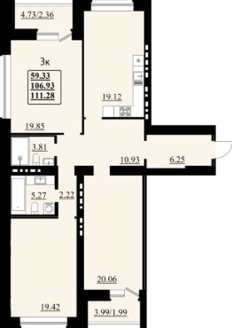3-комн. квартира, 111,28 м²