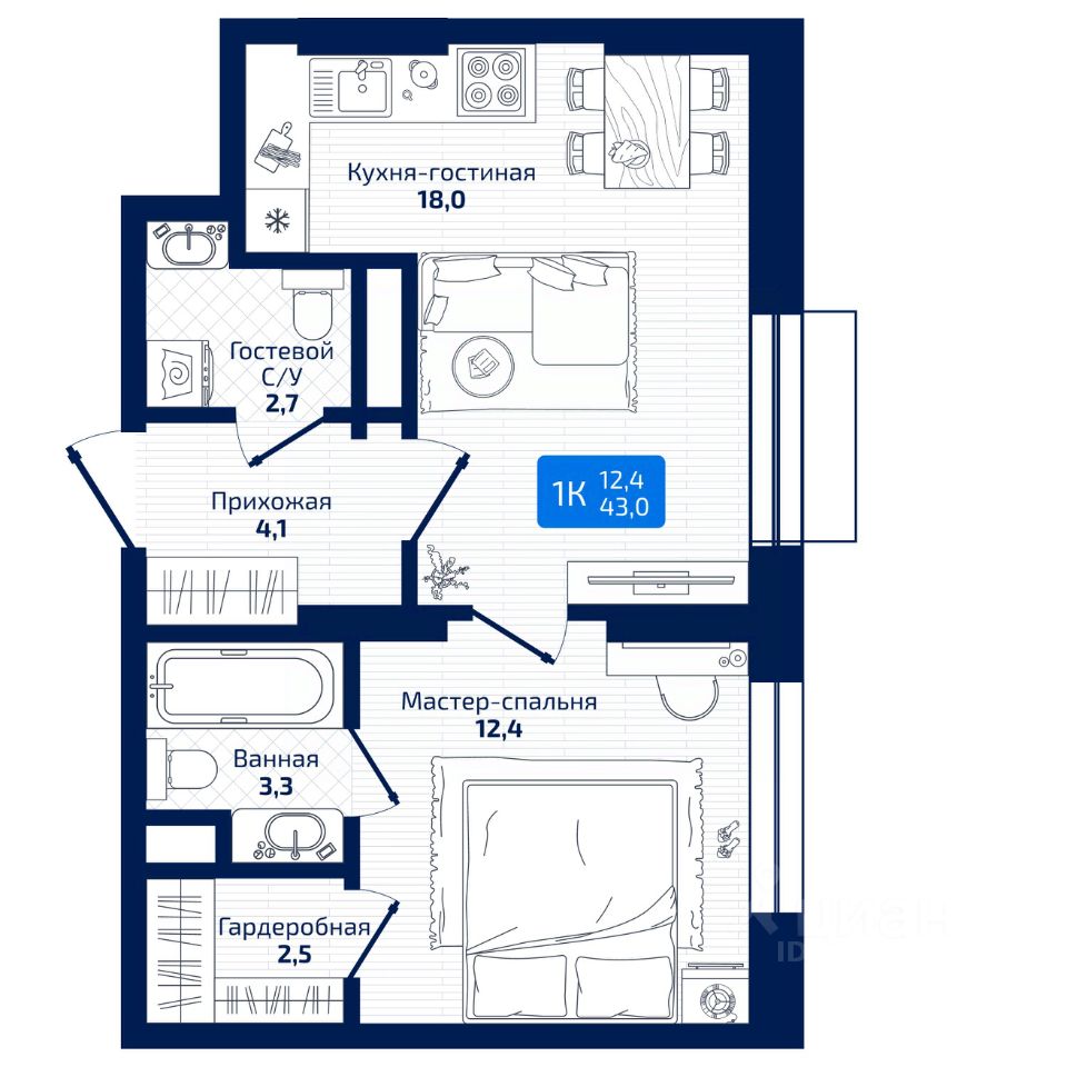 Общая площадь43 м²
