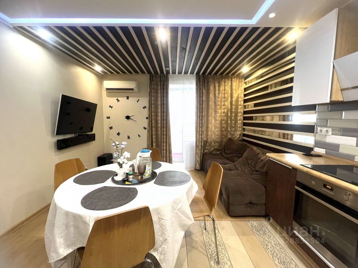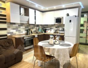 Кухня-гостиная оборудована современной мебелью и техникой.