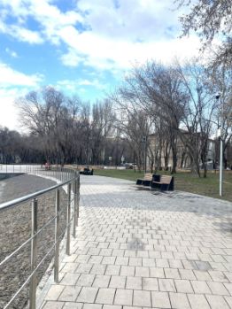 Сам дом расположен буквально в парке Молодёжный, в окружении лиственных деревьев.